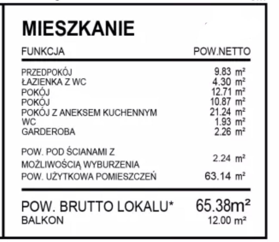 Zapraszam do zapoznania się z ofertą nowego mieszkania 3pokojowego o pow. 65.38 m2.